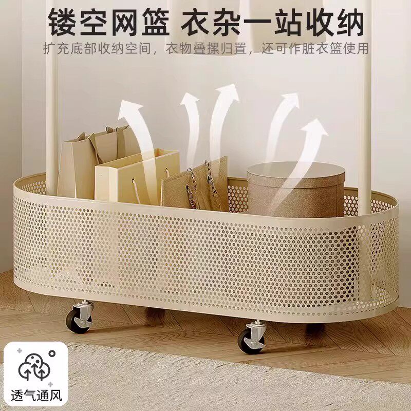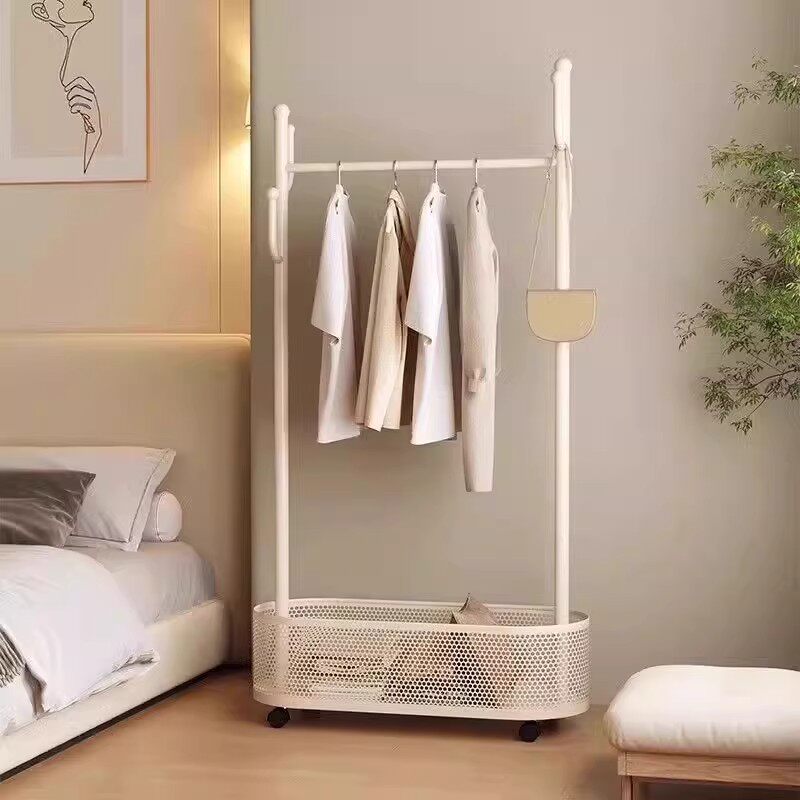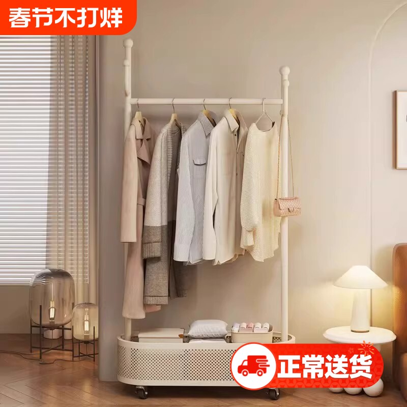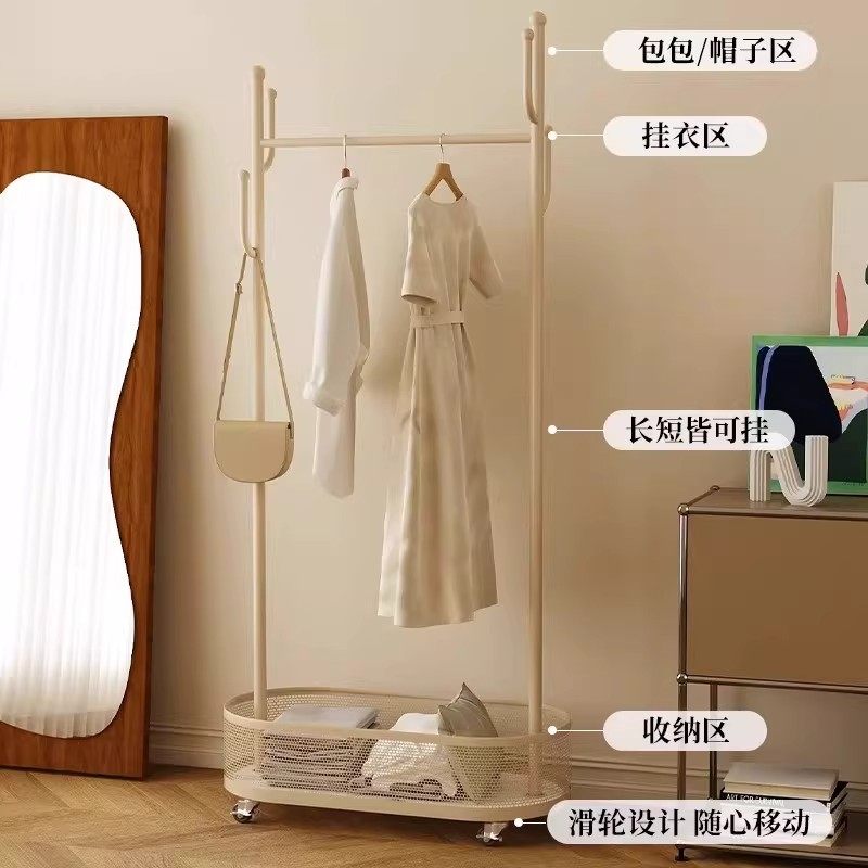 衣架落地卧室奶油风挂衣架家用铁艺简易晾衣架室内客厅移动衣帽架
