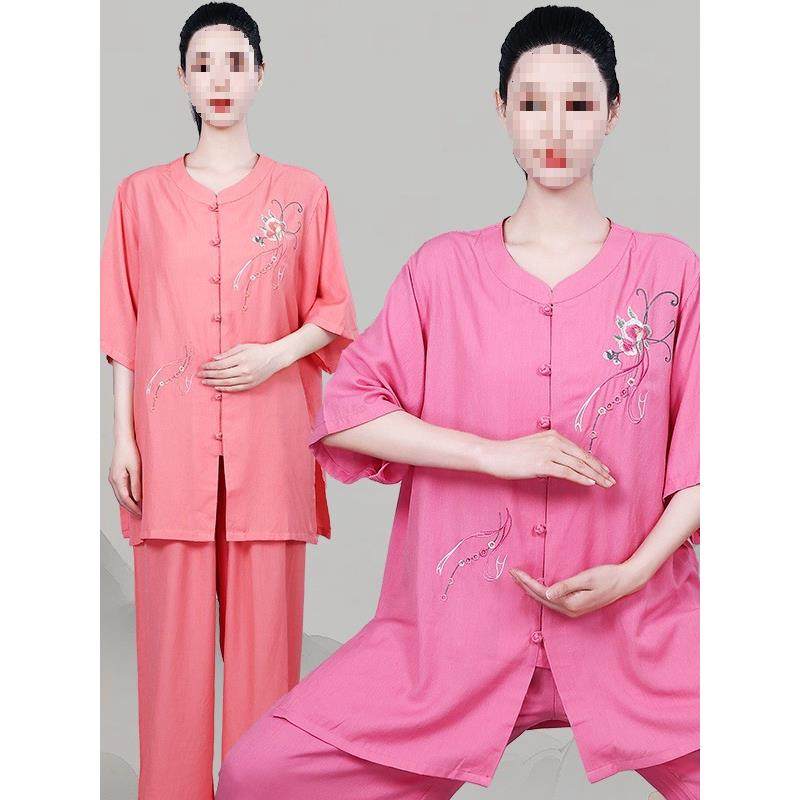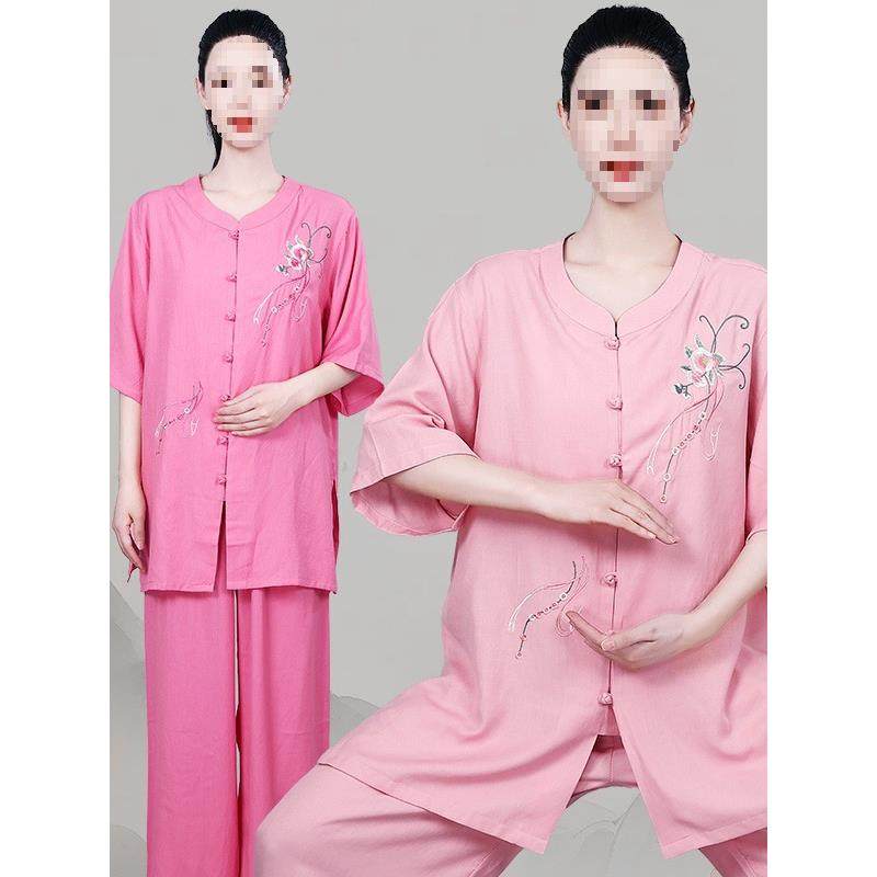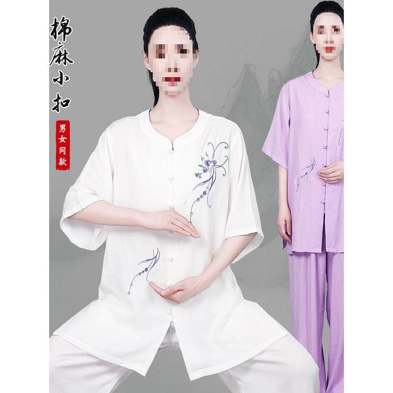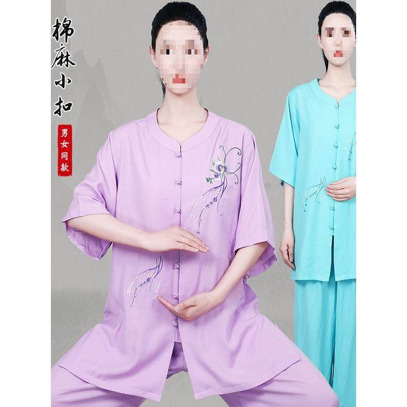 新款太极服棉麻小扣绣花男女比赛服团体表演服练功服侧兜
