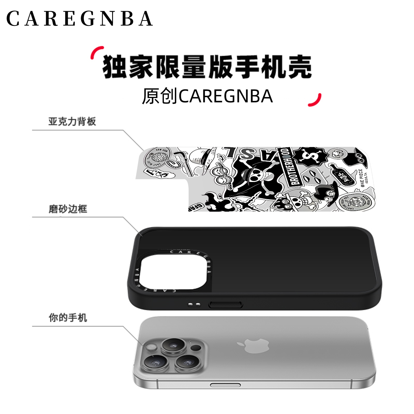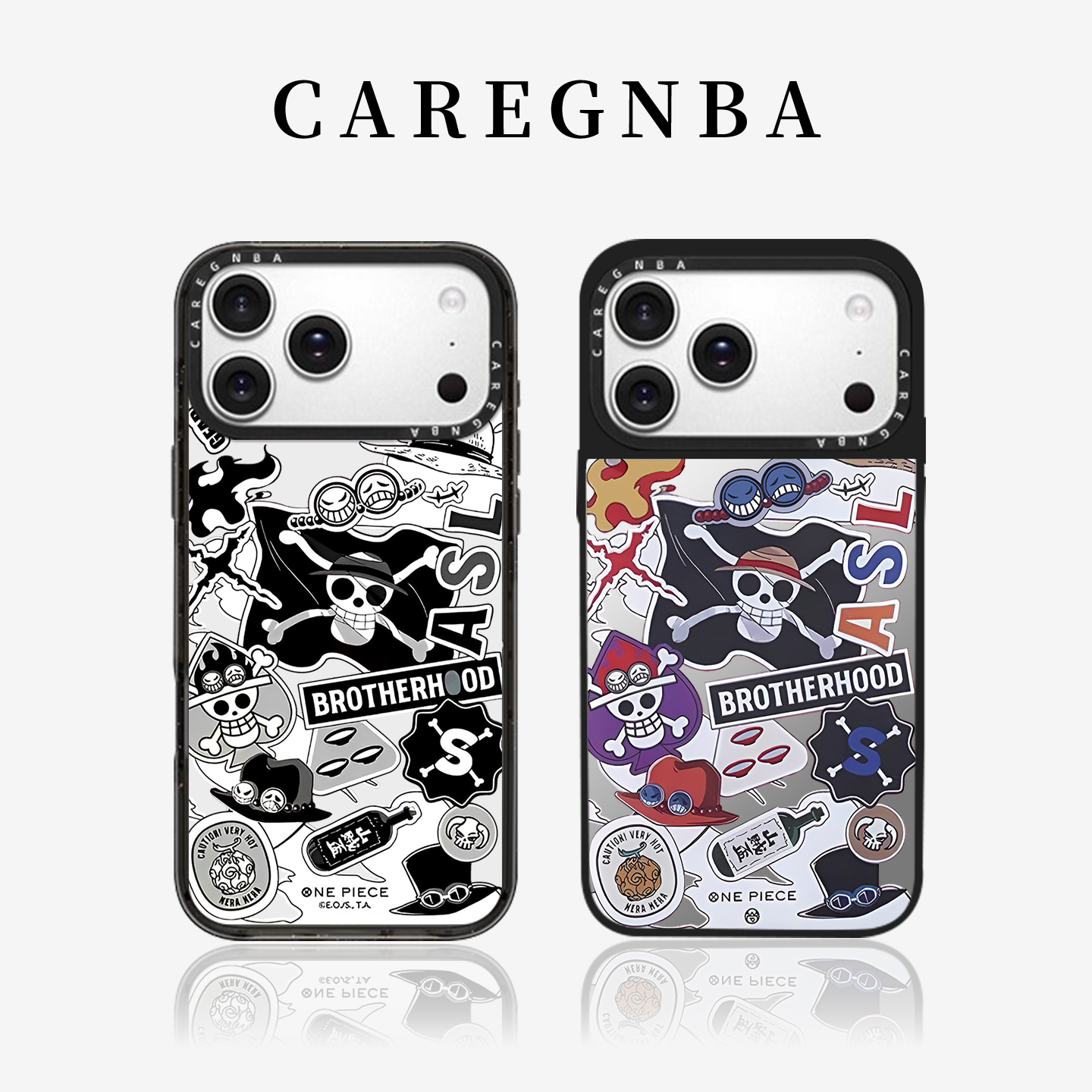 CAREGNBA海贼王联名兄弟贴纸适用苹果16promax手机壳iPhone14plus防摔13网红15潮牌11男13网红12女11镜面XR套
