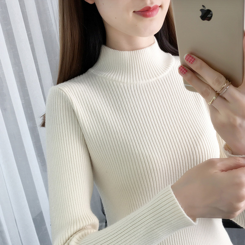 中领半高领毛衣打底衫女长袖内搭2025春秋新款大码百搭修身针织衫