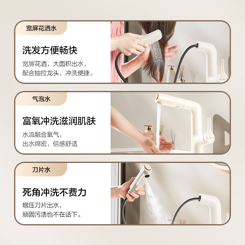 恒洁面盆龙头抽拉浴室洗手盆冷热水龙头家用宽屏花洒升降旋转927