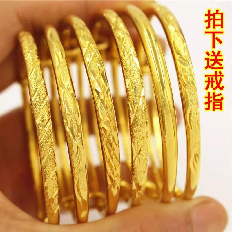 越南沙金推拉手镯女款仿真黄金正品实心不掉色龙凤结婚送妈妈首饰