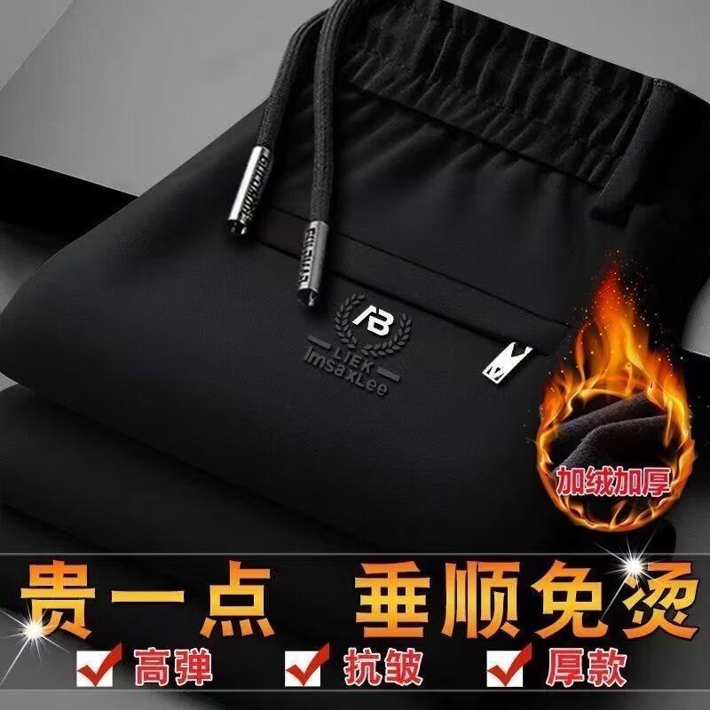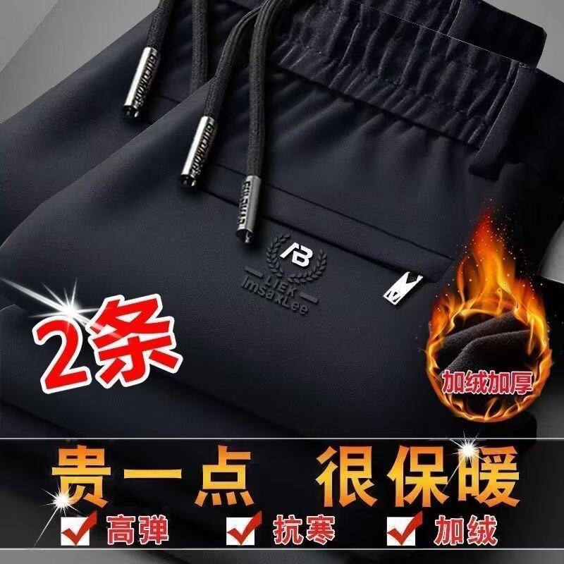 鸿星尔克裤子冬加厚男防风直筒长裤男士软壳运动裤爸爸休闲裤男裤