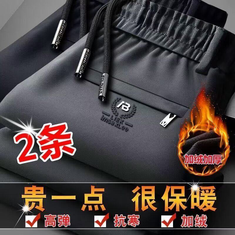 秋冬季男裤2025新款松紧腰运动裤宽松直筒爸爸裤子加绒长裤灰色