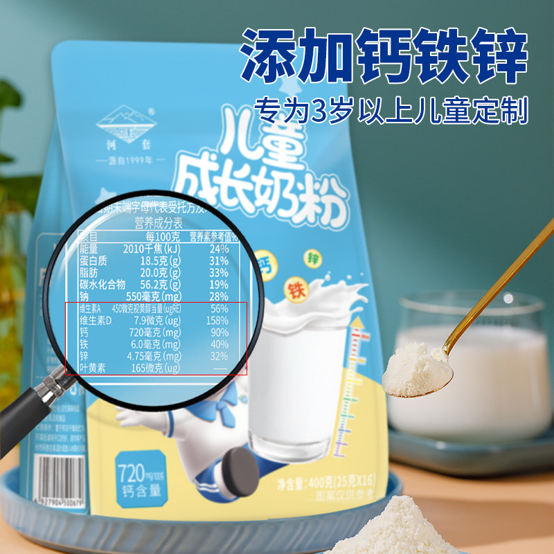 儿童成长奶粉3到15岁学生营养钙铁锌叶黄素配方牛奶粉独立小包