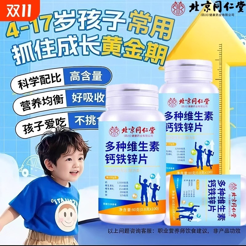 北京同仁堂多种维生素钙铁锌片儿童学生青少年钙片官方正品旗舰店