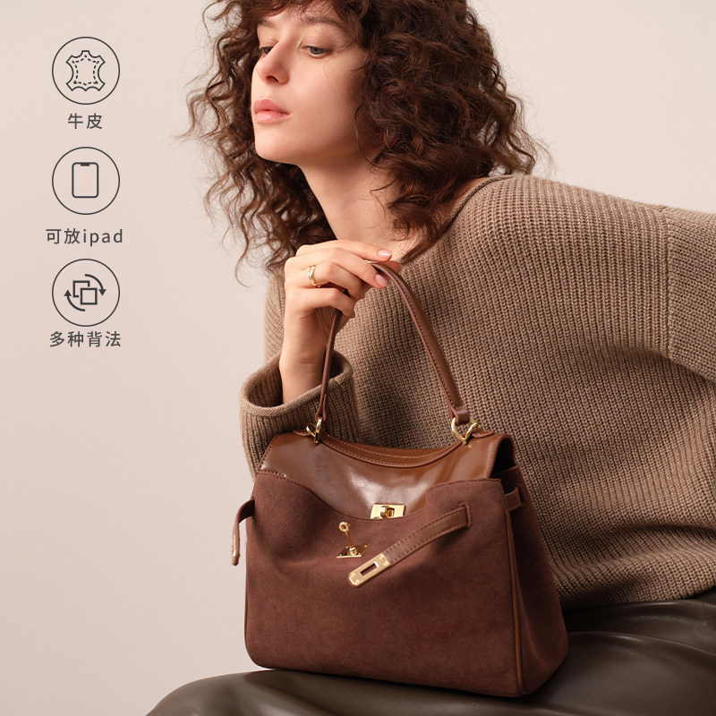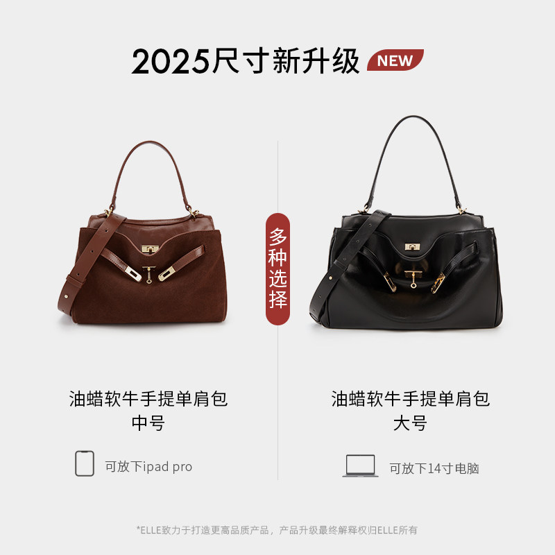 圣诞礼物ELLE女包2025新款铂金系列软牛皮通勤手提包大容量托特包