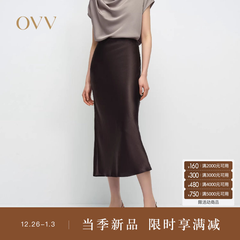 OVV2025春夏新款女装淡人缎面醋酸面料高级优雅简约直筒半裙