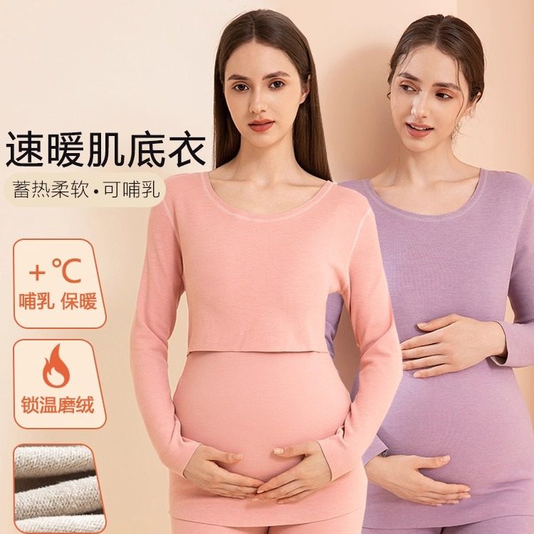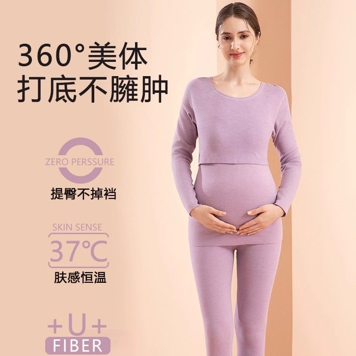 婧麒孕妇秋衣秋裤套装保暖内衣孕期打底产后哺乳喂奶大码月子服冬