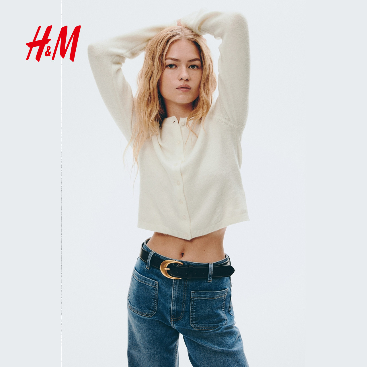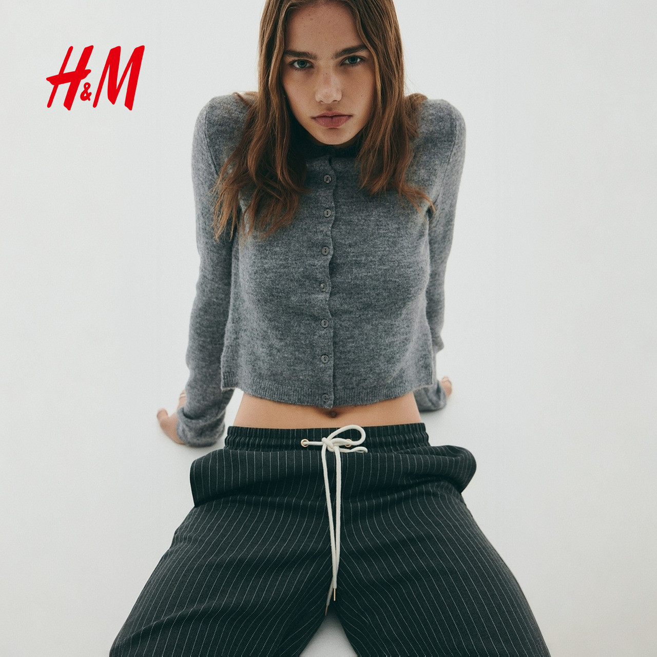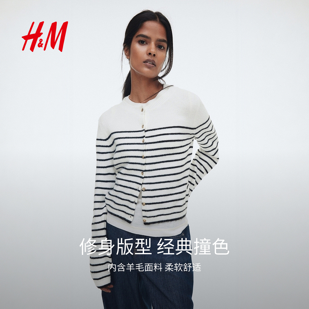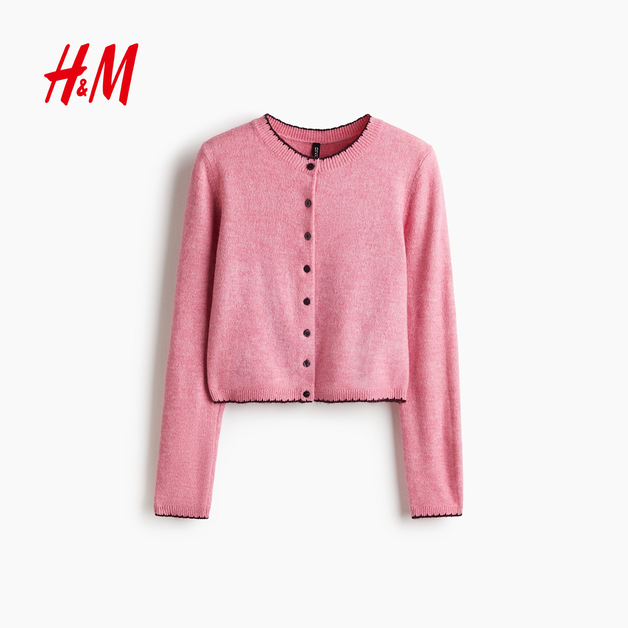 HM女装毛针织衫2025冬季新款圆领打底衫保暖气质开衫外搭1289684