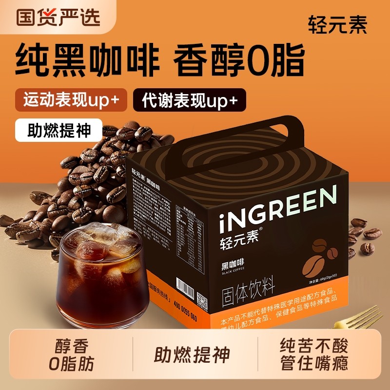 轻元素美式黑咖啡速溶0脂超燃减健身代餐独立包装咖啡粉阿拉比卡