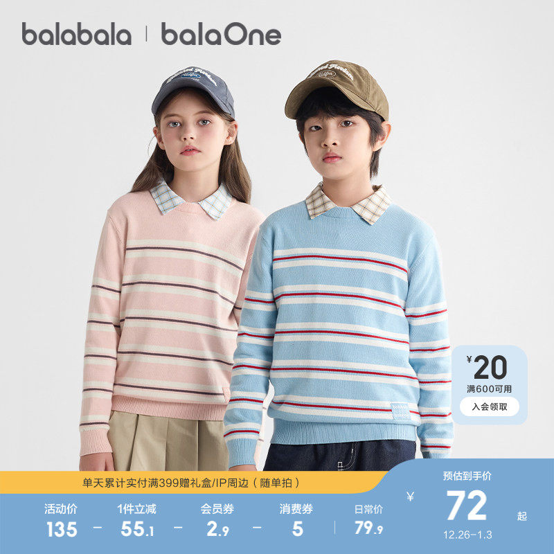 巴拉巴拉童装儿童毛衣男童2025新款春秋装毛衫女童亲子打底针织衫