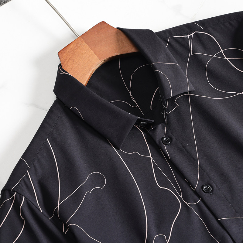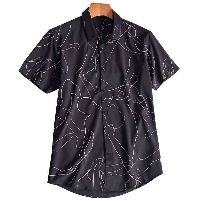 品牌撤柜男装衬衣再生纤维素夏季时尚花纹休闲弹力男士短袖衬衫潮