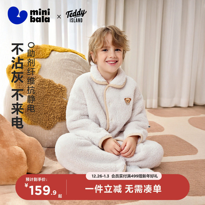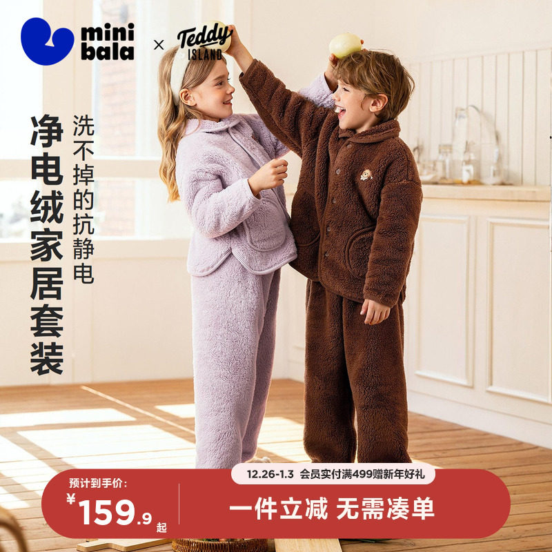 【泰迪熊IP联名】迷你巴拉儿童家居服套装男女童可外出亲子加绒