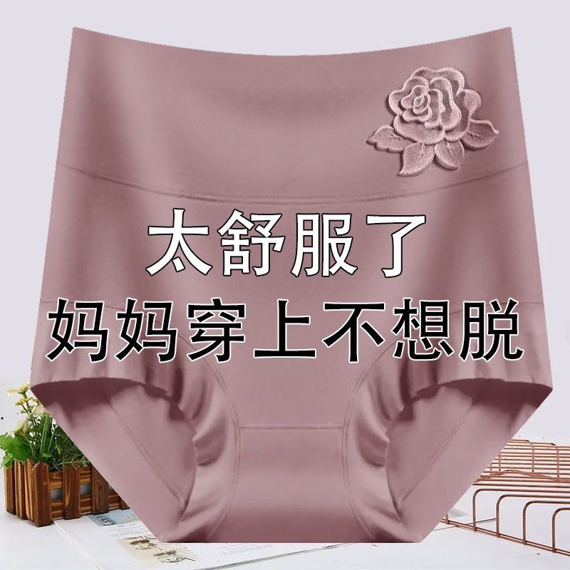 莫代尔高腰内裤压花收腹大码mm舒适透气抗菌裆三角短女士裆部抑菌
