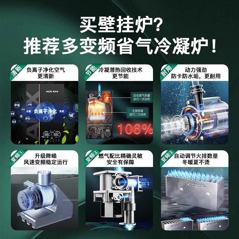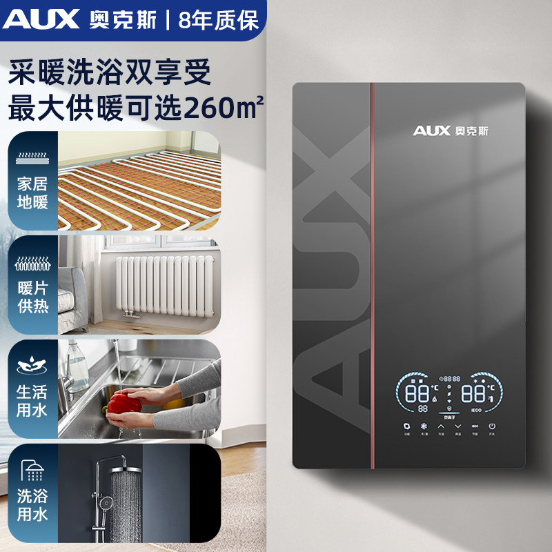奥克斯燃气壁挂炉天然气家用采暖热水两用冷凝地暖锅炉一级能效