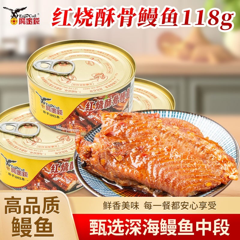 鹰金钱红烧酥骨鳗鱼小罐头海鲜香辣速食下酒菜下饭菜面条泡面搭档