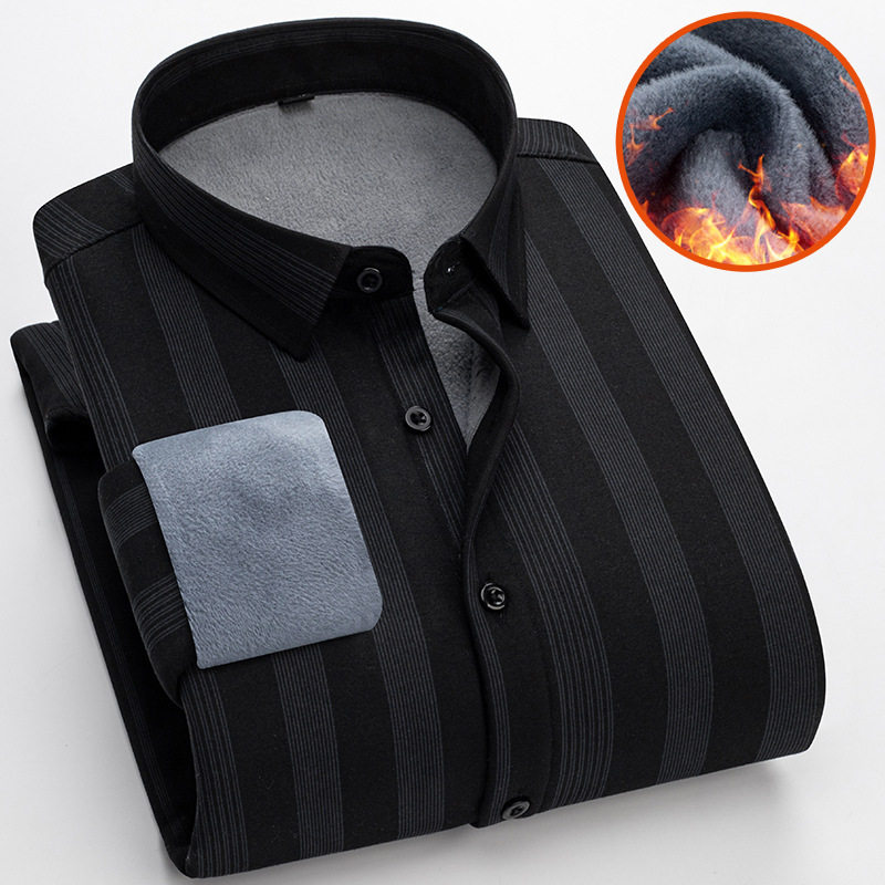 罗蒙加绒加厚衬衫男士冬季商务休闲保暖免烫抗皱衬衣上衣打底衫