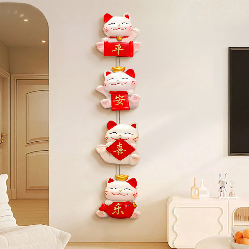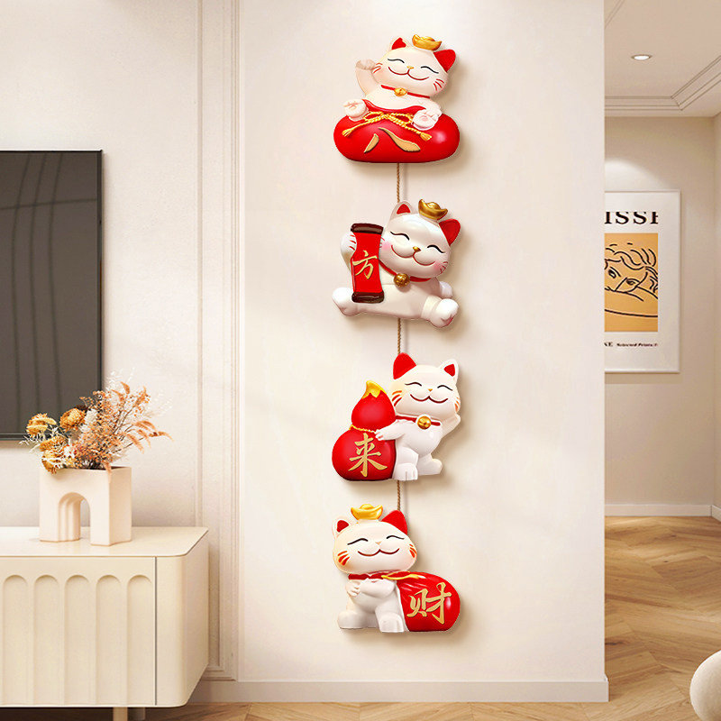 暖居招财猫客厅电视背景墙装饰画挂饰奶油风墙面挂画壁画壁挂餐厅