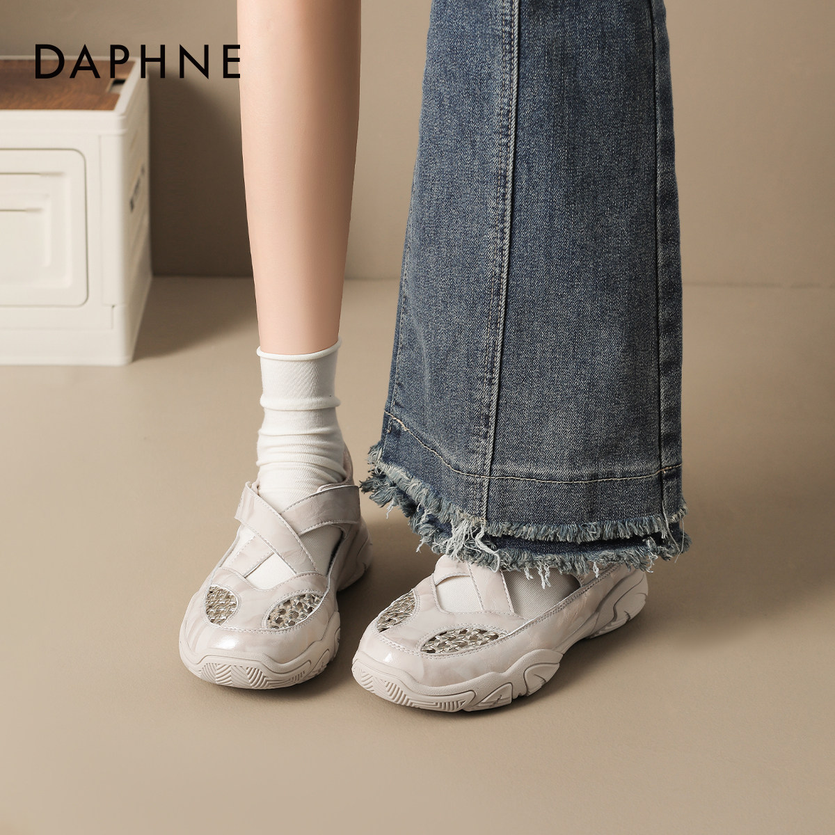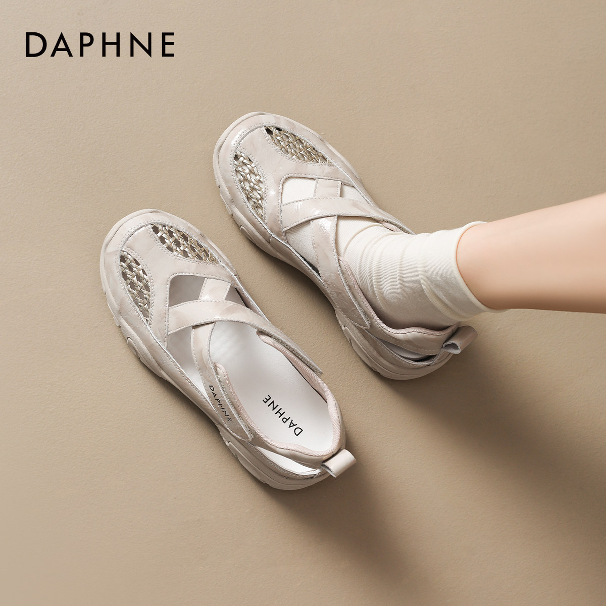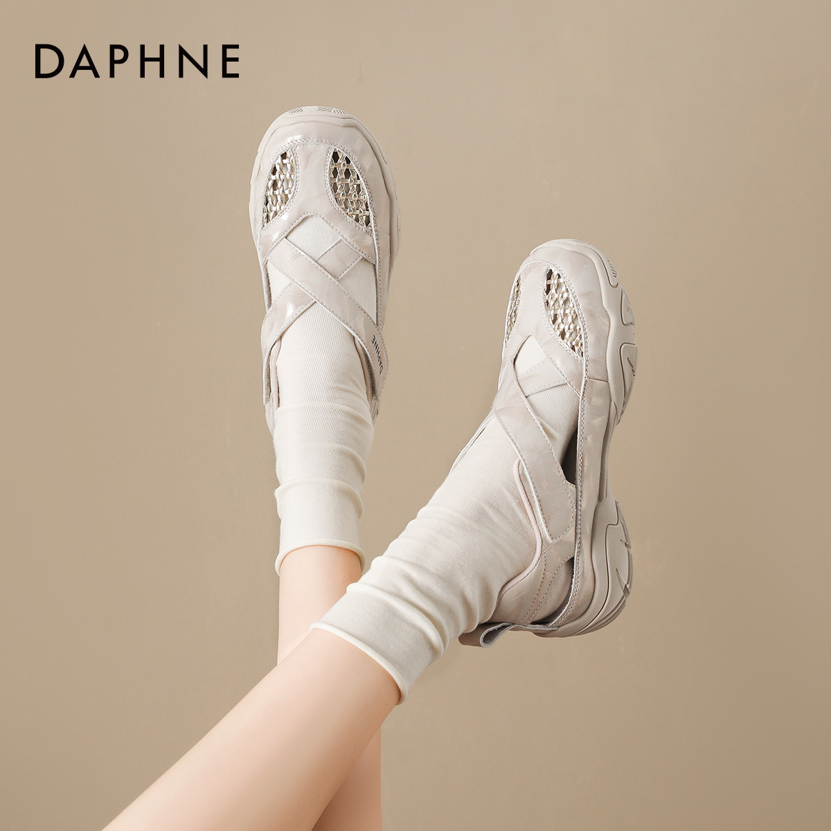 达芙妮运动休闲凉鞋2026夏季新款厚底增高跟女款包头罗马女鞋外穿