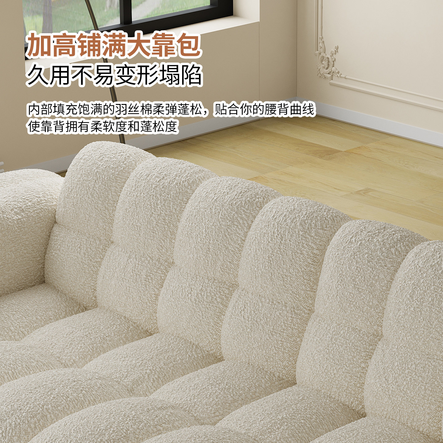 奶油风布艺沙发客厅小户型羊羔绒单双人直排沙发卧室简约懒人沙发
