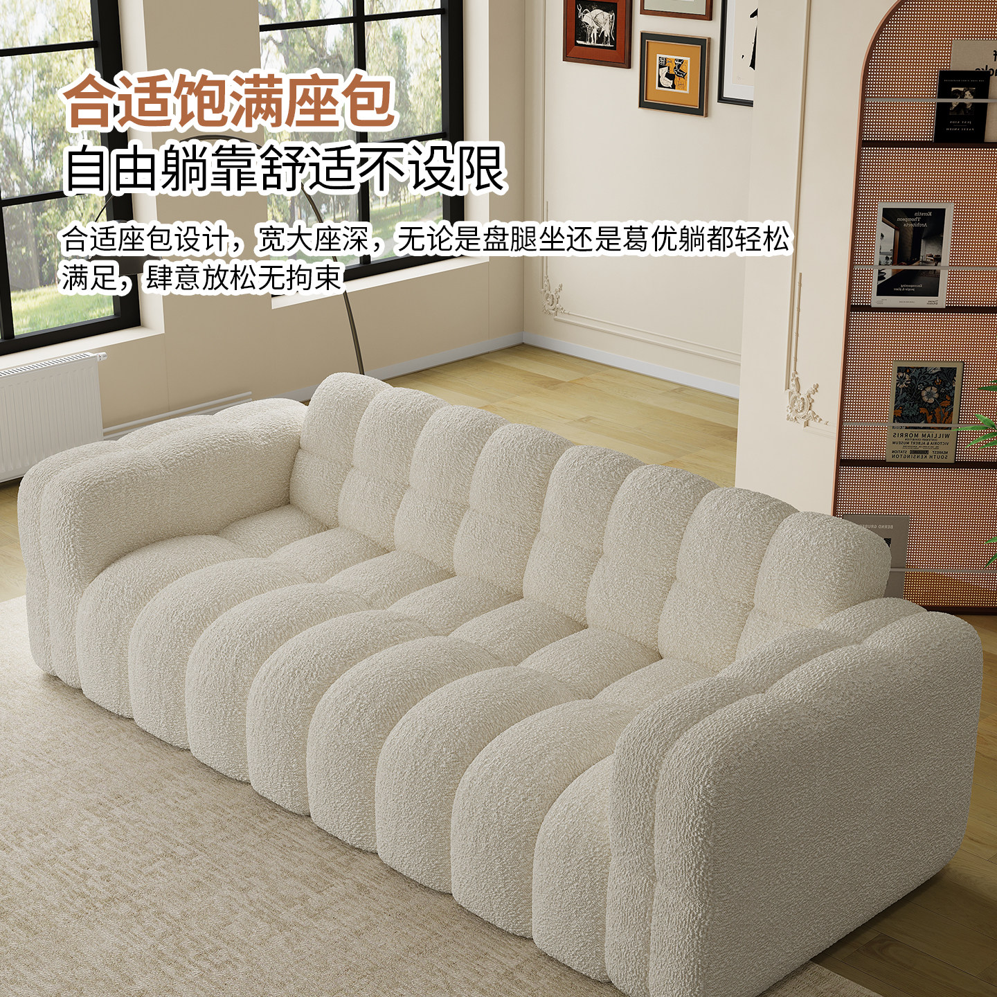 奶油风饼干沙发客厅现代简约公寓出租房小户型泡芙直排布艺沙发