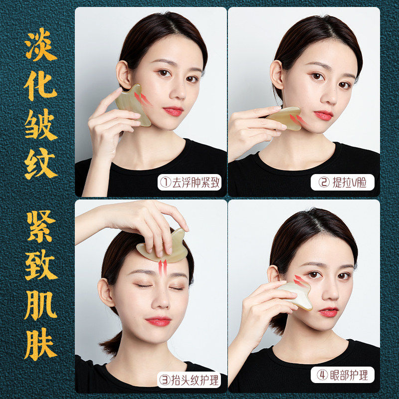 天然白水牛角刮痧按摩板脸部专用面部眼拨筋棒提拉紧致神器正品女