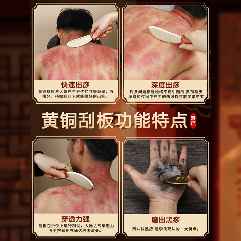 李氏砭法黄铜刮痧板纯铜虎符砭肩颈背部全身通用刮痧刀脸部经络