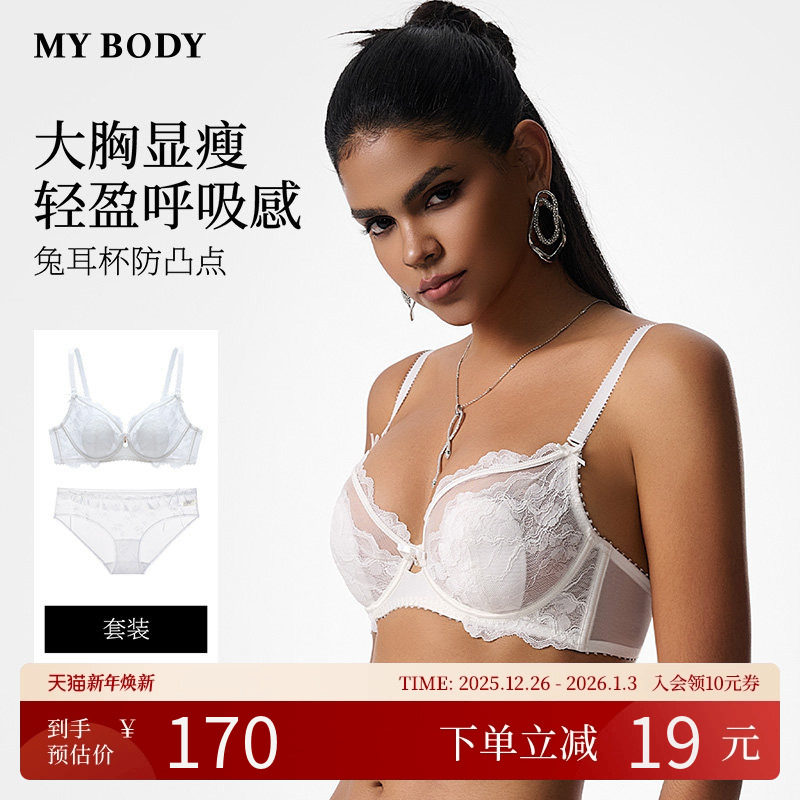 MYBODY商场同款内衣女大胸显小蕾丝性感防下垂文胸套装