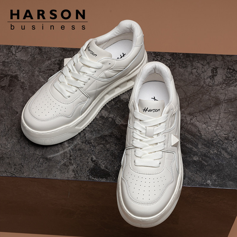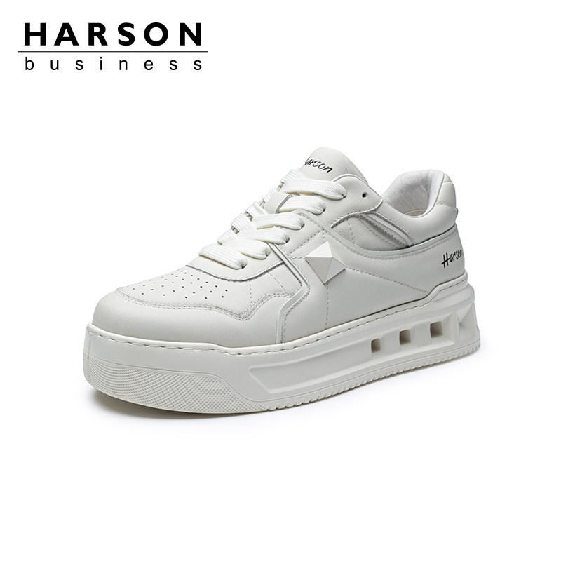 哈森男鞋秋季新款增高厚底极简小白鞋真皮休闲板鞋运动时尚潮鞋男
