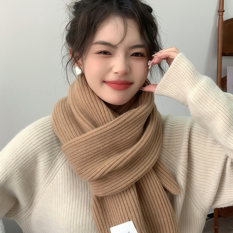【王俊凯同款】骆驼针织保暖围巾冬季防风百搭男女毛线情侣围脖