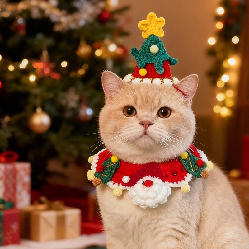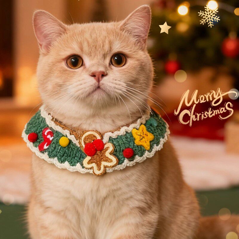 圣诞猫咪项圈围脖新年围兜钩织装饰领结铃铛狗狗宠物冬季配饰脖圈