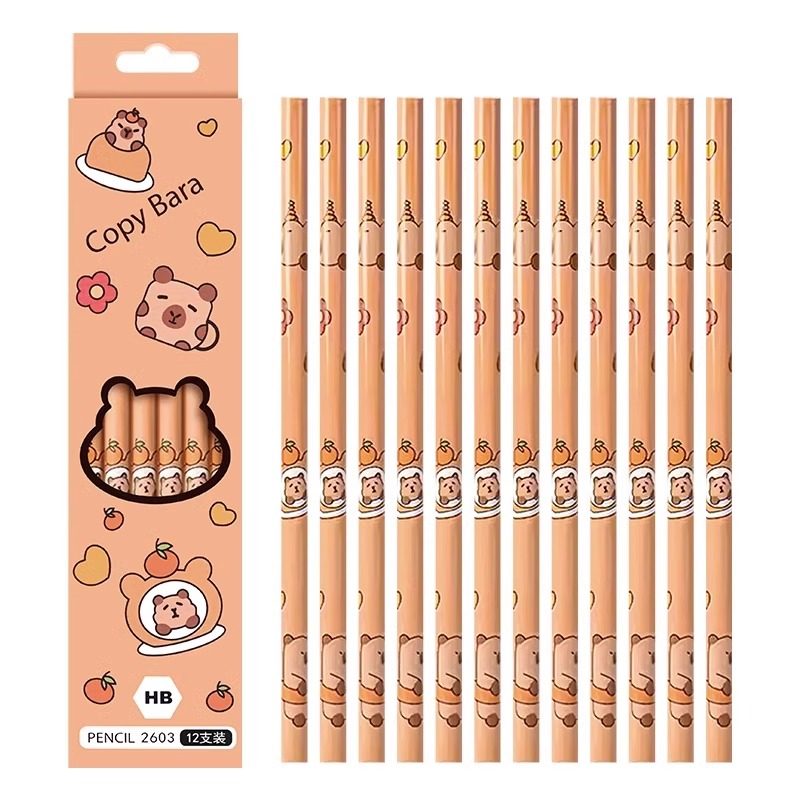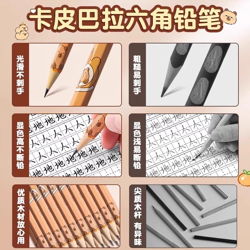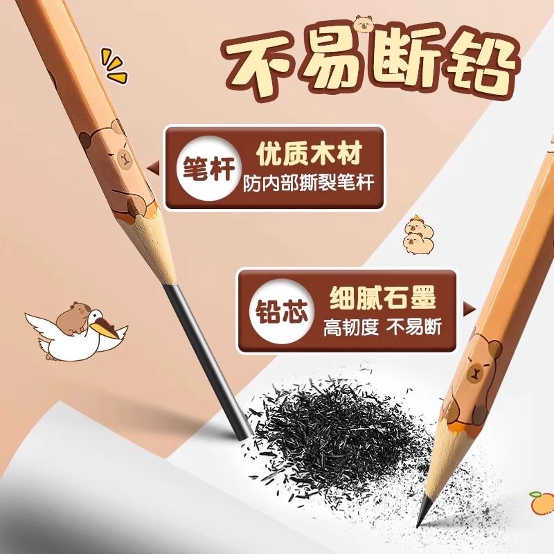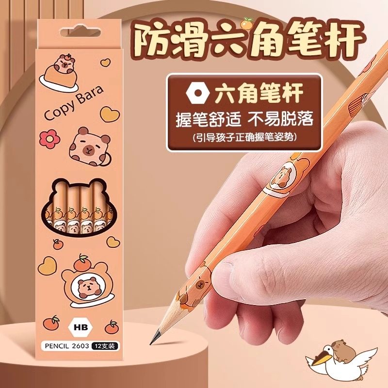 卡皮巴拉hb铅笔小学生专用无铅无毒一二年级幼儿园初学者控笔训练字学习用品儿童安全六角杆高颜值橡皮擦套装