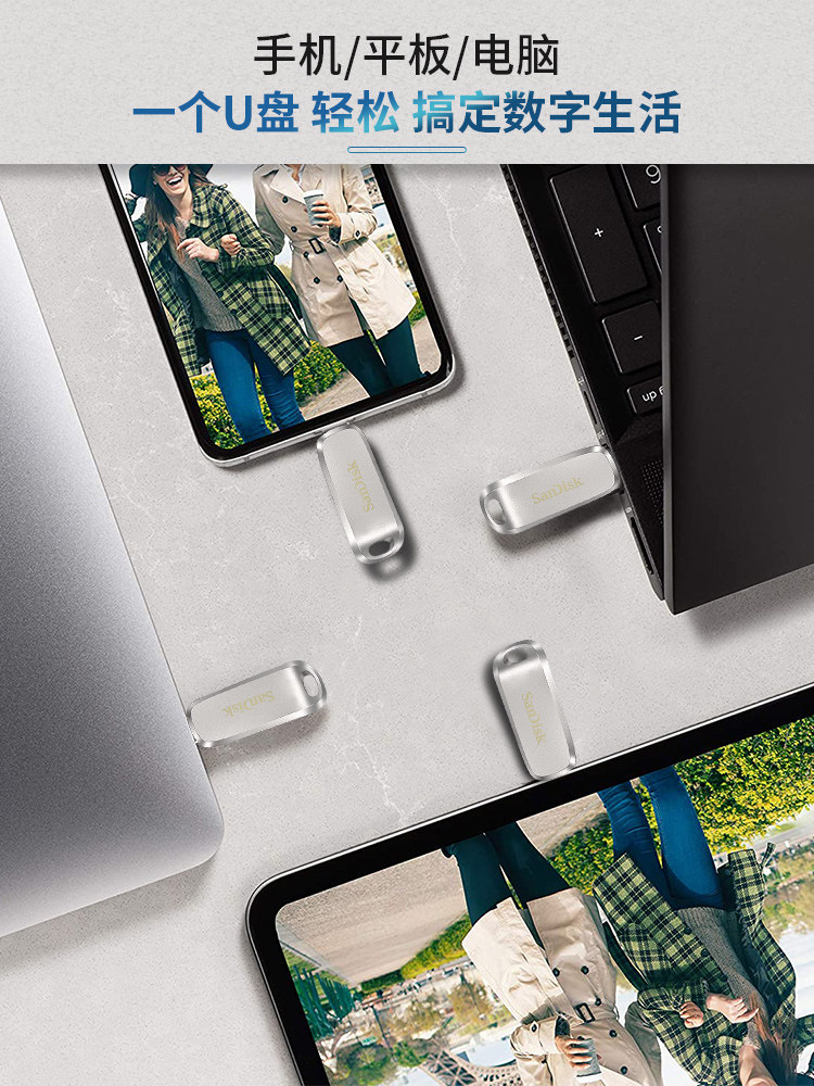 闪迪U盘256g128g64g32g手机电脑两用typec双接口otg优盘定制刻字