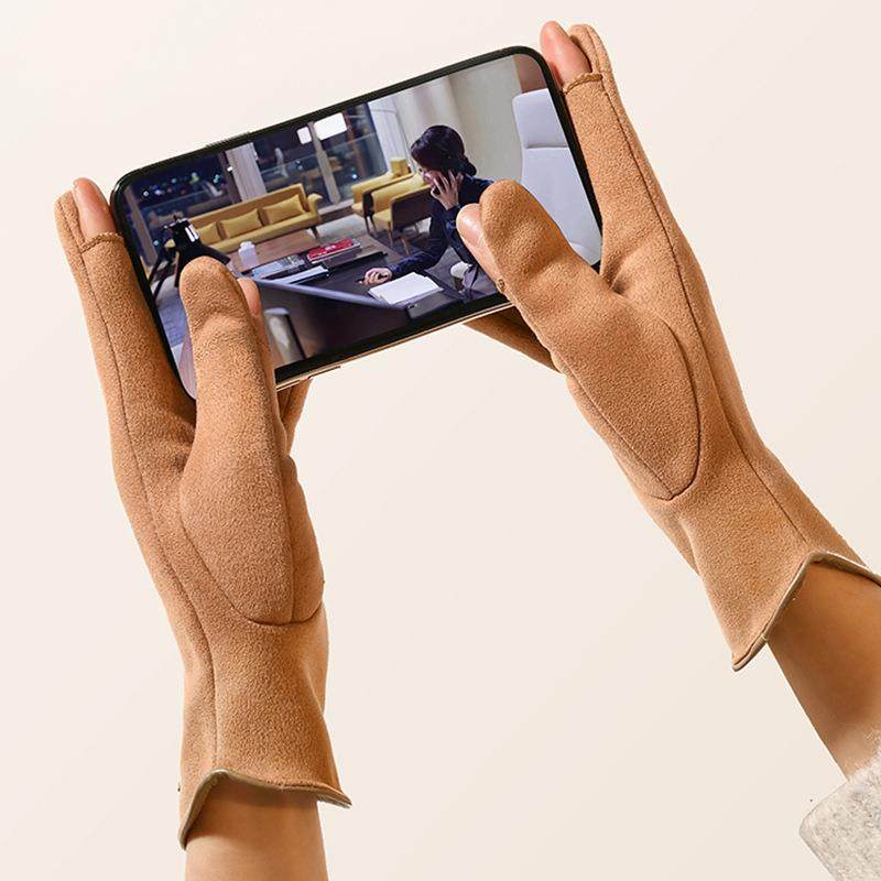 冬季保暖骑行男女士麂皮绒手套可爱韩版时尚户外加绒加厚触屏手套
