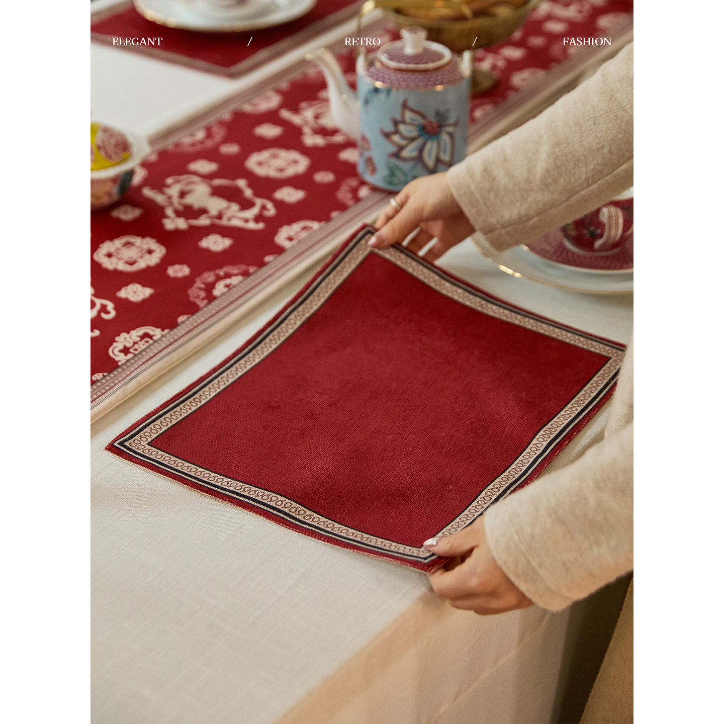 蜡笔派「马上有福」骏程如意餐垫现代简约新年红色茶几垫杯垫新款