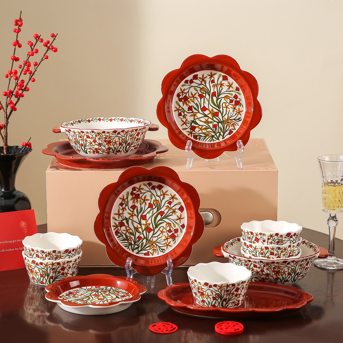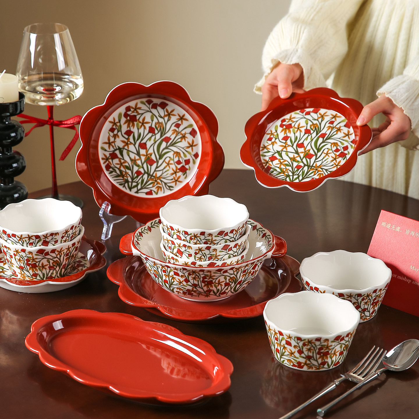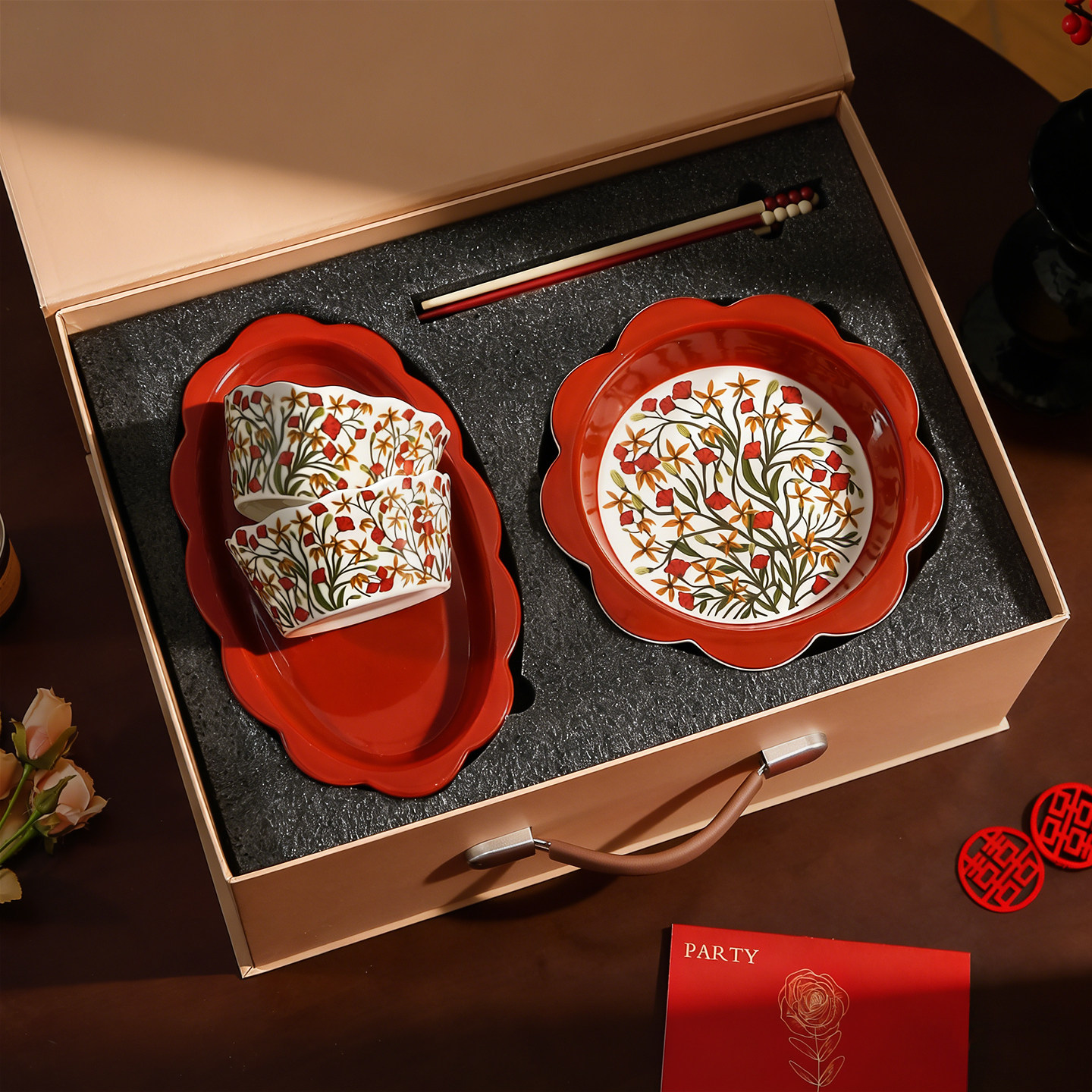 高档碗碟餐具陶瓷新婚礼物送新娘红色碗盘筷套装乔迁新居结婚礼盒