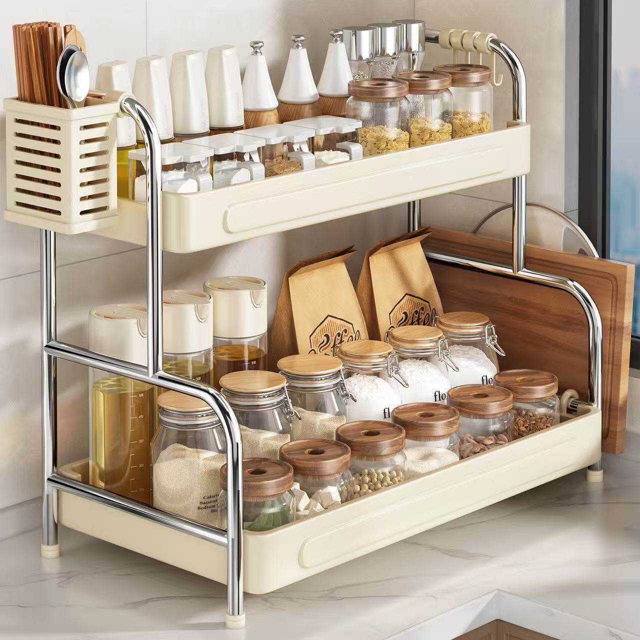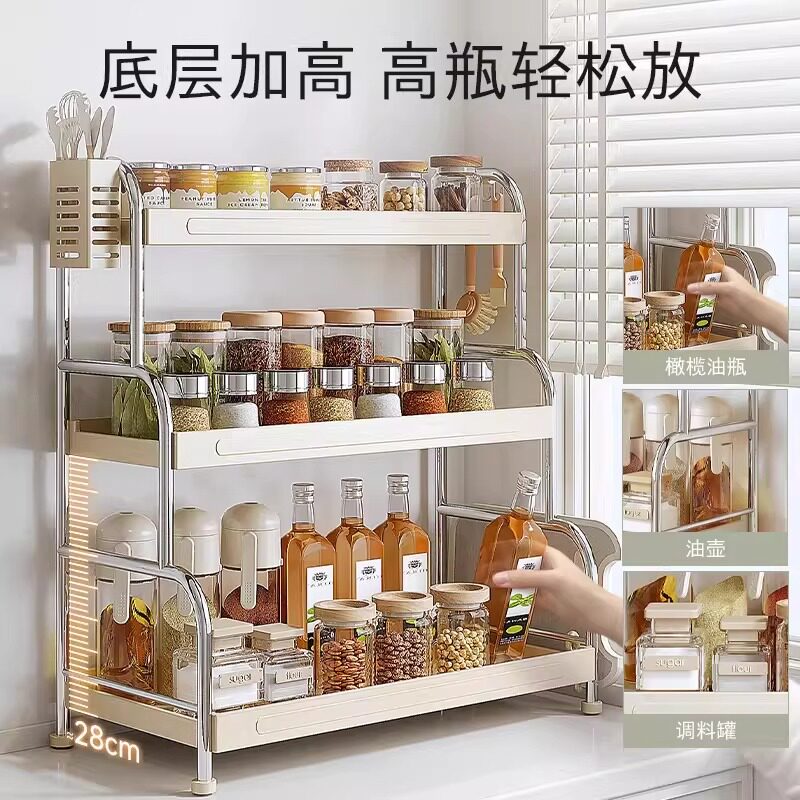 厨房置物架置物架多功能调料品架厨房盐调味罐收纳盒台面调料架子