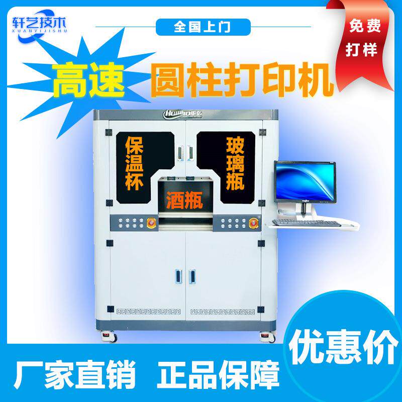 保温杯3d打印机圆柱体高速旋转uv喷绘机酒瓶logo光油印刷设备