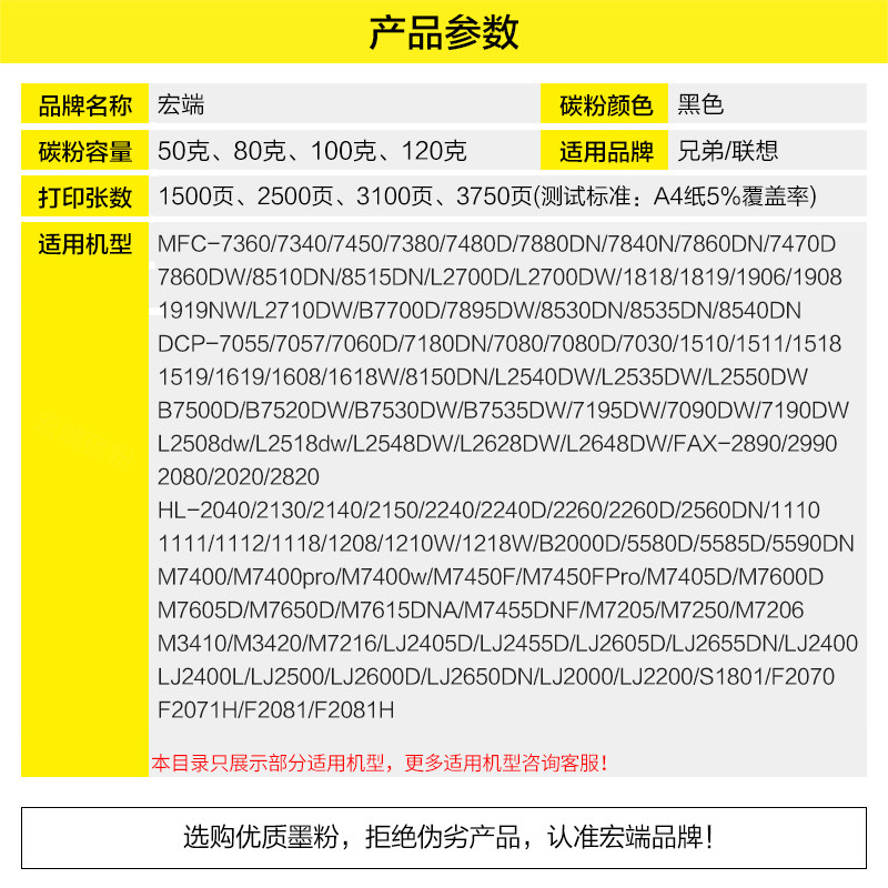 适用兄弟打印机MFC7360碳粉7380 DCP7080D 7180DN 1618w通用墨粉