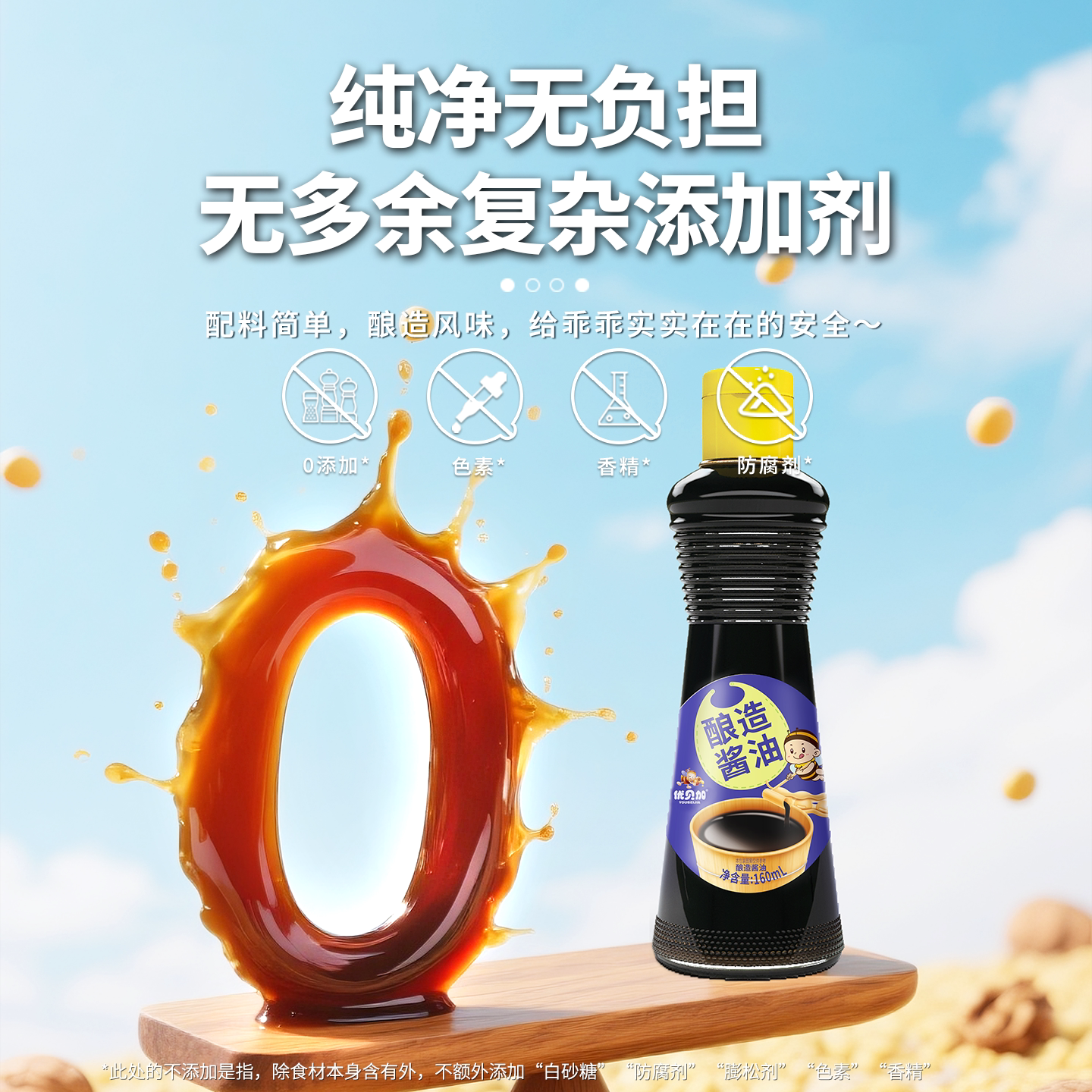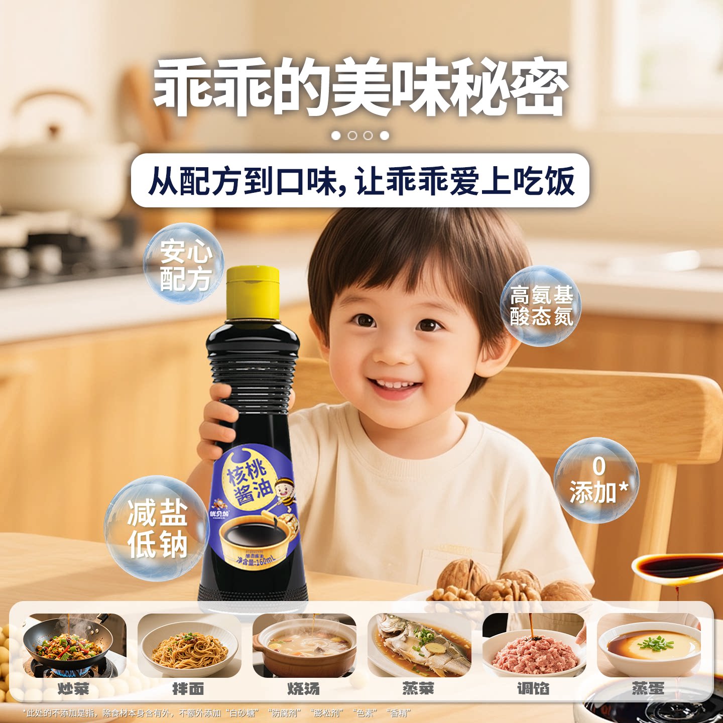 优贝加核桃酿造酱油家用儿童食用调味料减盐减钠送宝宝辅食食谱