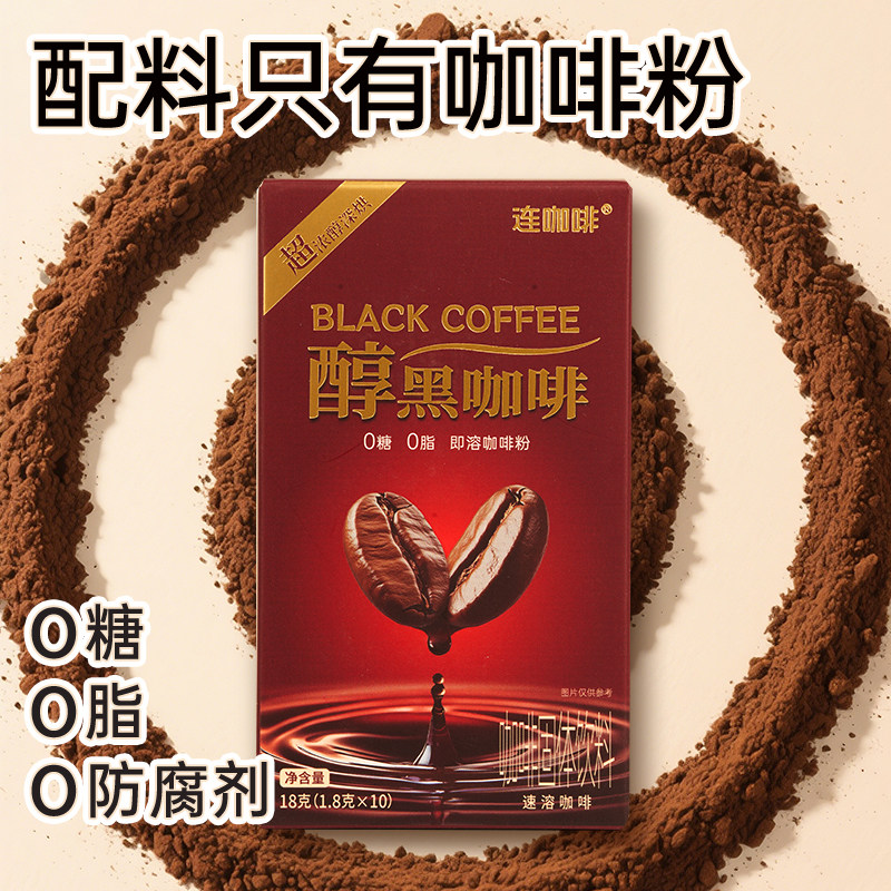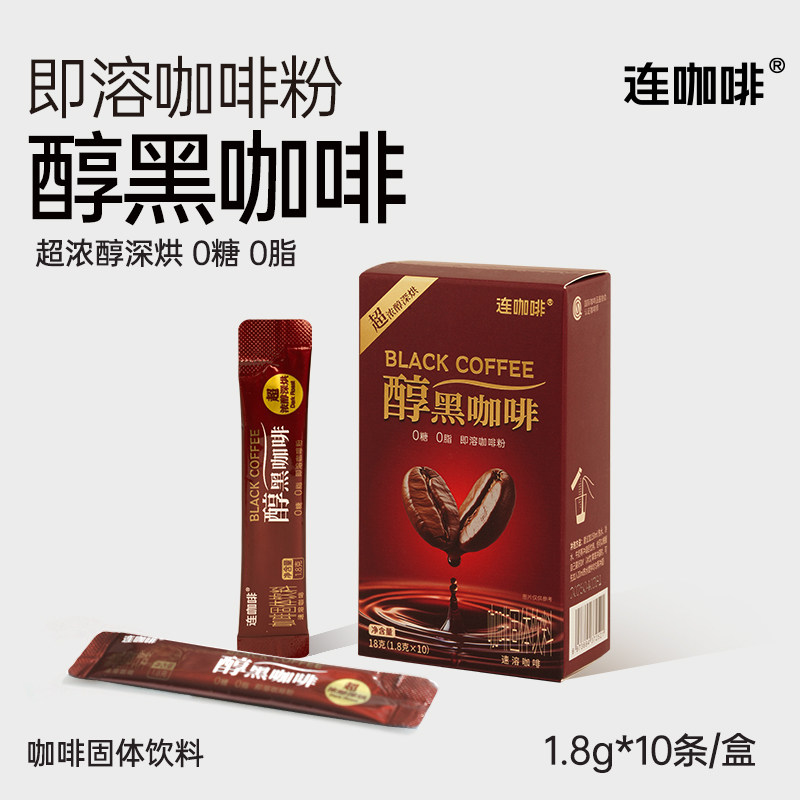 连咖啡 超浓醇深烘醇黑咖啡 0糖0脂即溶咖啡粉 1.8克x10条