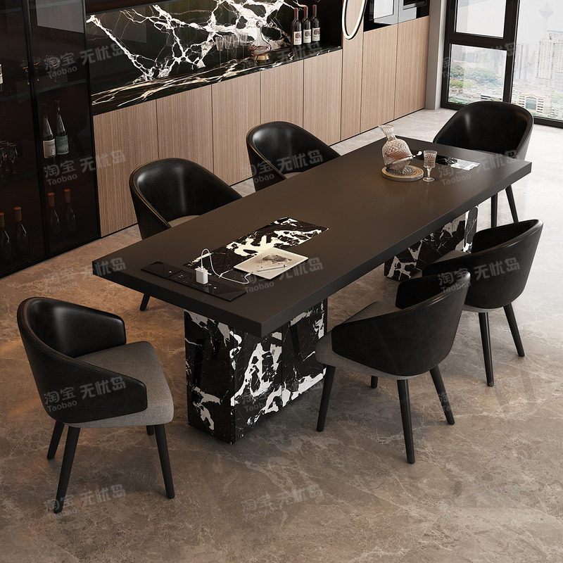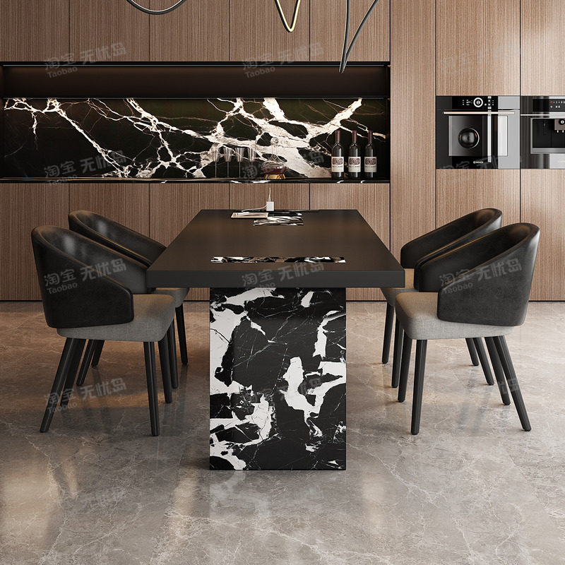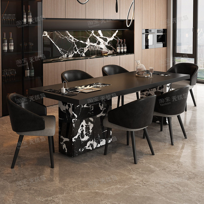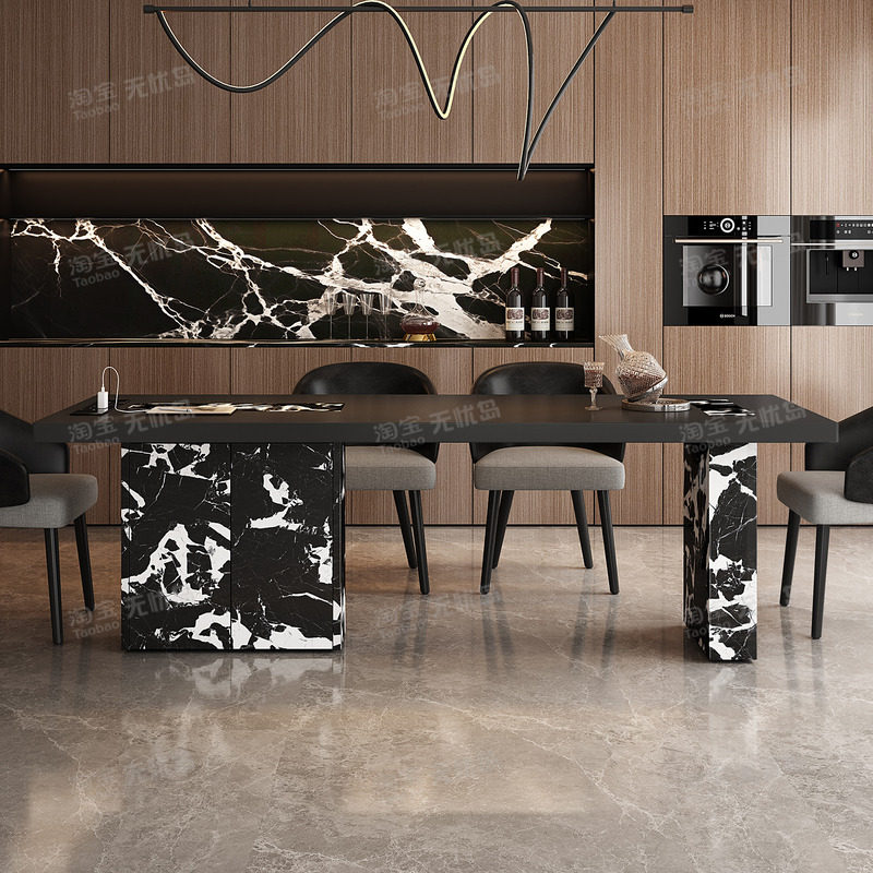 现代简约岩板餐桌家用高级感意式极简风加厚全包边桌面长方形饭桌
