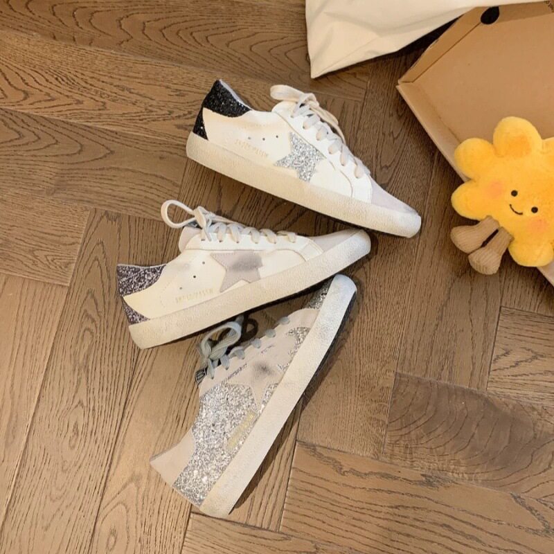 2026新款女鞋休闲鞋小脏鞋脏脏鞋星星鞋五角星亮片系带百搭运动鞋
