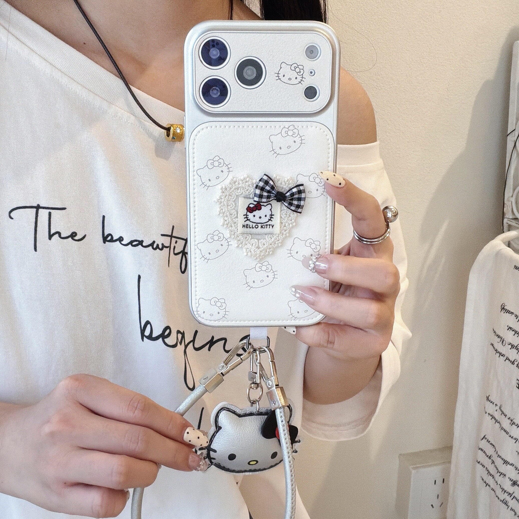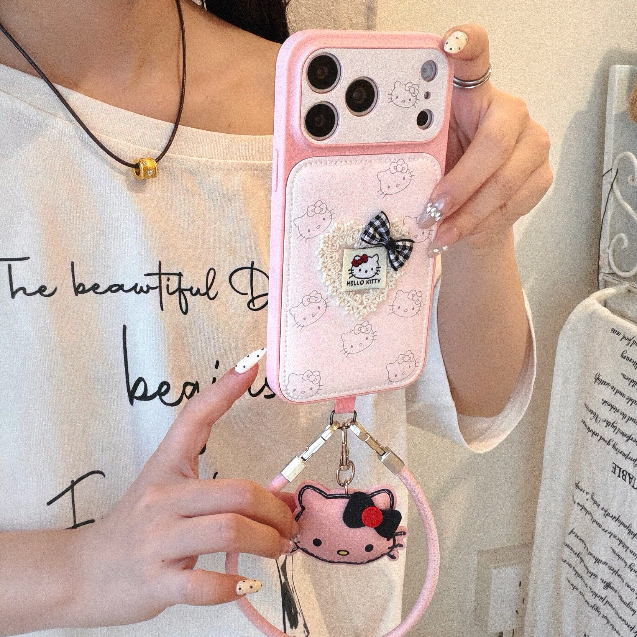 韩系ins温柔少女心蕾丝爱心KT猫适用苹果17ProMax手机壳iphone15新款16pro挂绳全包17pro创意14皮纹13pm鼓包
