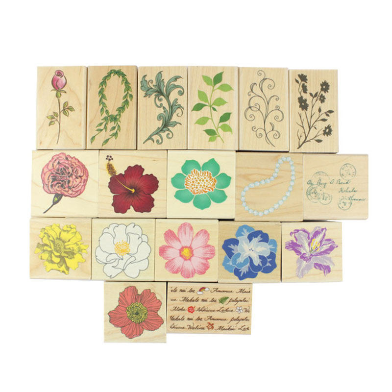 现货 日本kodomo no kao 复古木质花朵花卉花草植物手帐印章背景