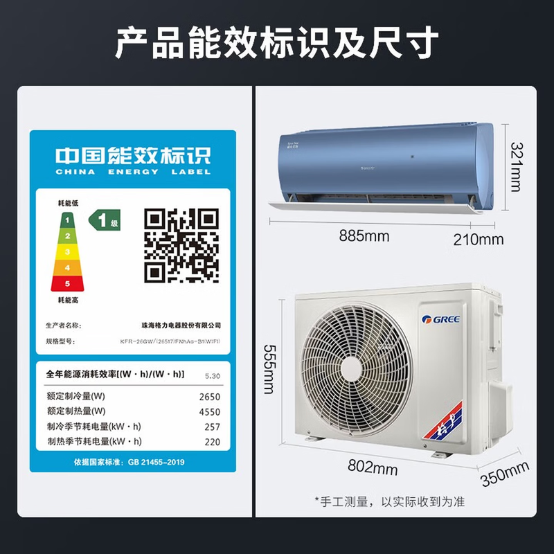 海尔净畅1.5匹空调家用挂式变频一级能效挂机冷暖两用卧室小型GCA