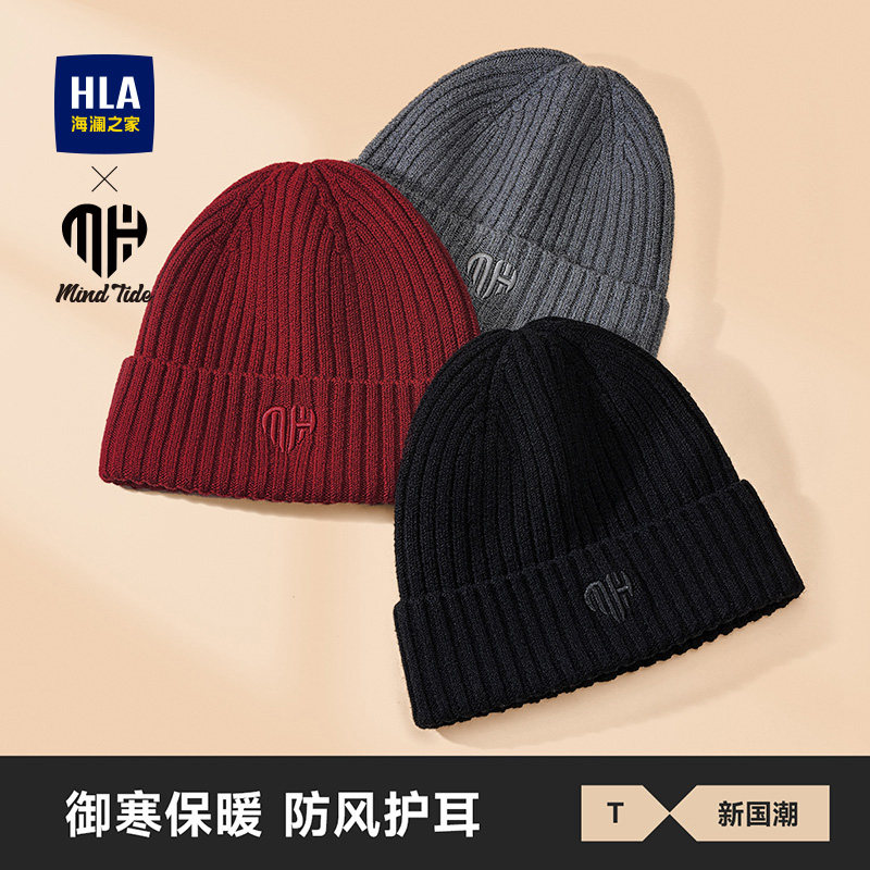 海澜之家针织帽男士时尚2025新款秋冬季加绒女本命年毛线红色帽子
