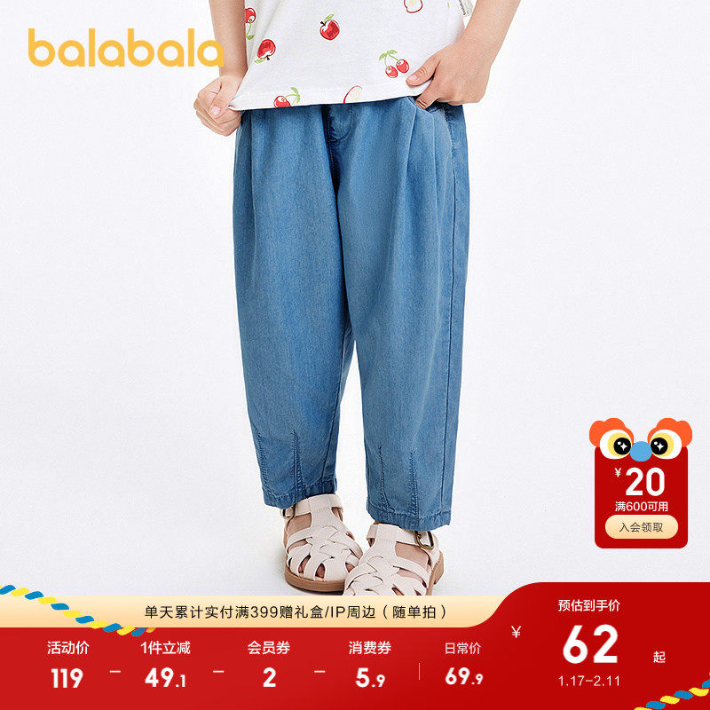 巴拉巴拉童装儿童裤子男童长裤女童夏装薄款2025新款牛仔裤防晒潮