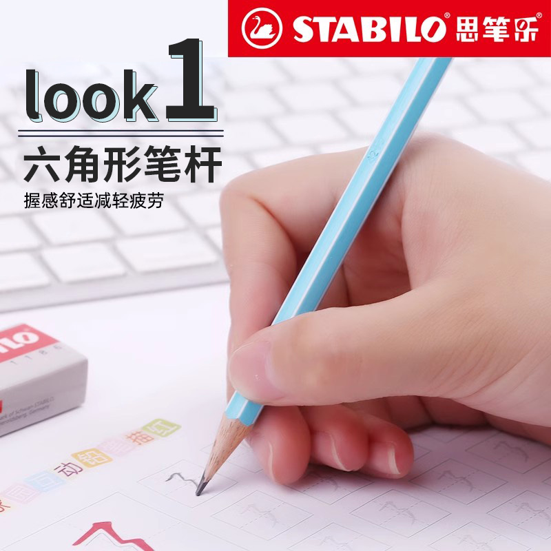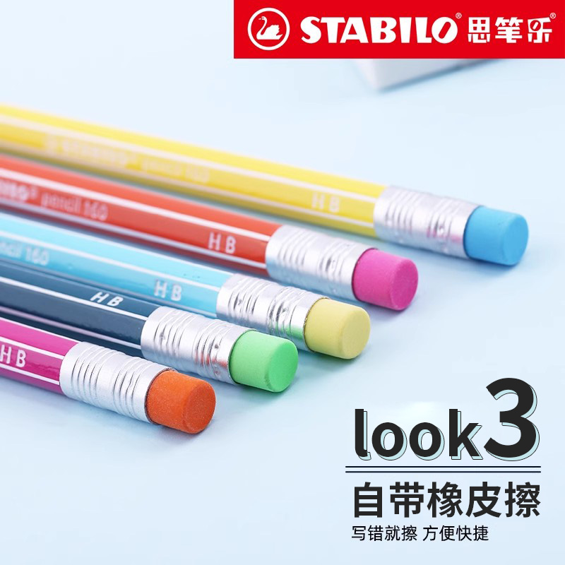 stabilo旗舰店德国思笔乐2160木杆铅笔自带橡皮头六角杆hb铅笔儿童小学生书写练字儿童幼儿园文具可爱高颜值